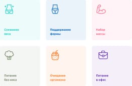 Программы для снижения веса, поддержания формы, набора мышечной массы, а также для вегетарианцев, веганов и рыбное меню