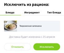 Заменяйте легко не понравившиеся блюда и ингредиенты в личном кабинете на нашем сайте