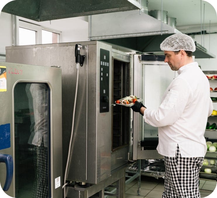 Вся продукция сразу после печи, котла и плиты, температурой около 90 градусов отправляется на шоковое охлаждение. Технология позволяет не только охладить продукт до нужной температуры, а также не дает возможности развитию микроорганизмов